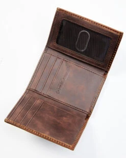 Hooey Men’s Brown Southwestern Embossed Bi-Fold Money Clip Wallet