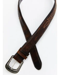 Cody James Men’s Lasered Floral Pattern Cream Lace Leather Belt